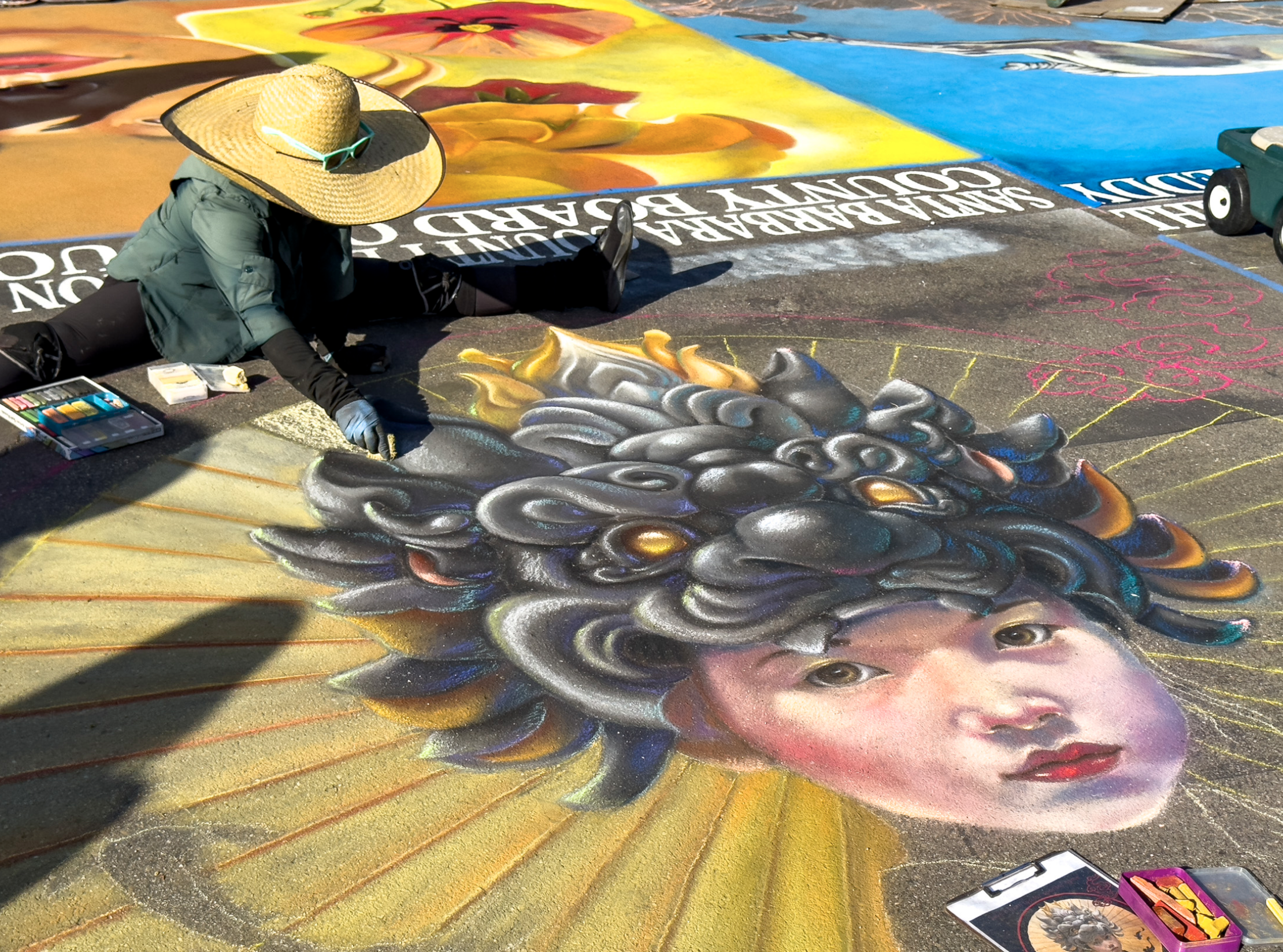 I Madonnari is a fundraising event for Children’s Creative Project (CCP), a nonprofit arts education organization of the Santa Barbara County Education Office. The festival proceeds sponsor art programs conducted by professional artists at schools serving more than 50,000 children in county public schools.